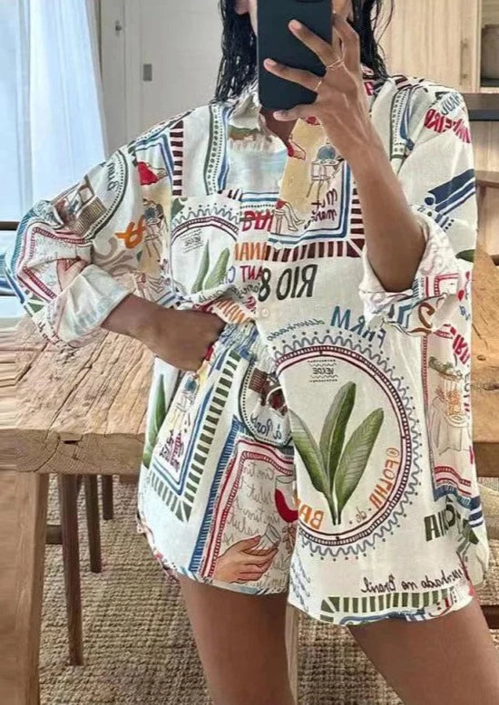 סט ריו מעוצב בעיצוב קיצי ואומנותי הסט מיוצר מבד פשתן נעים וחלומי