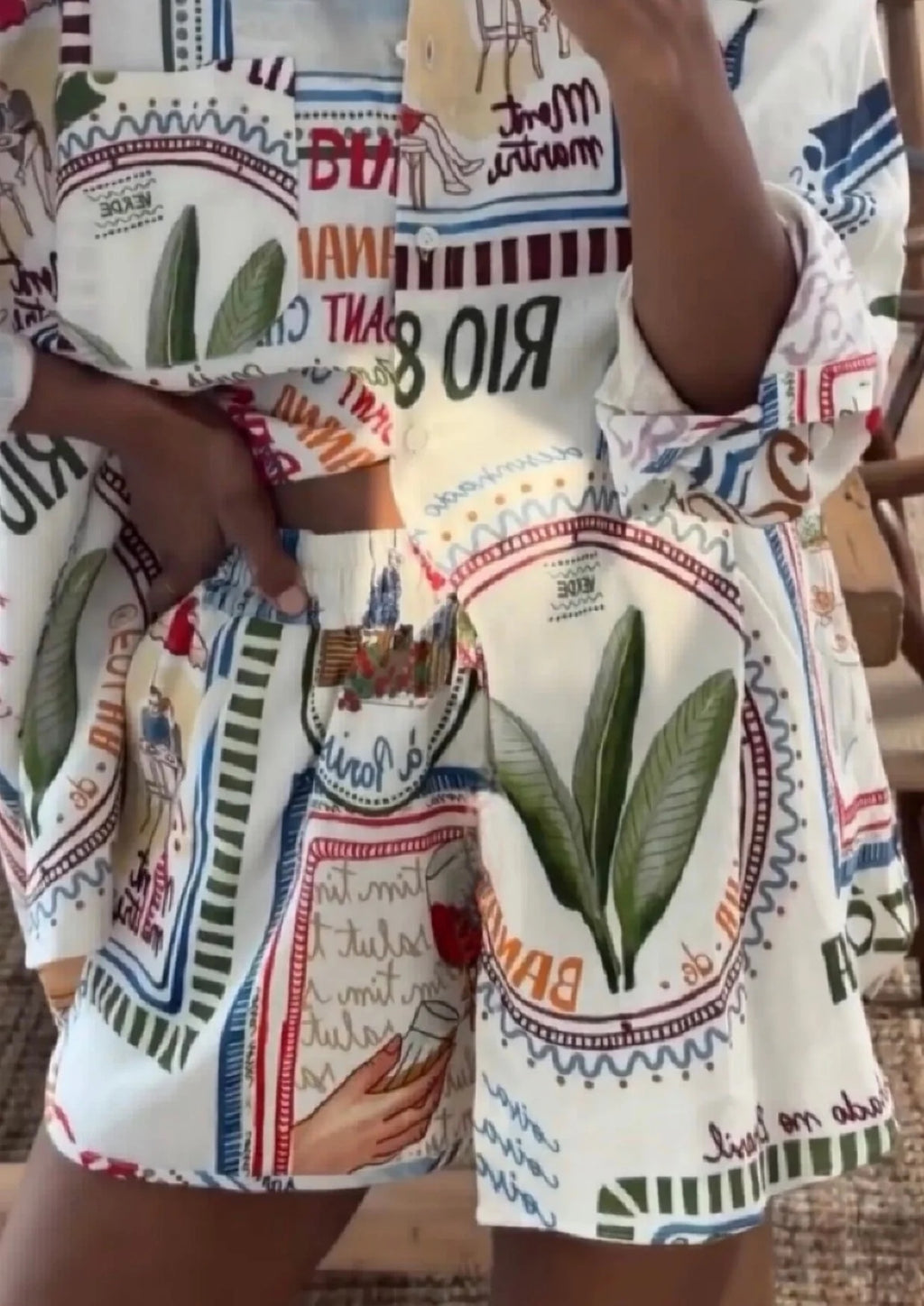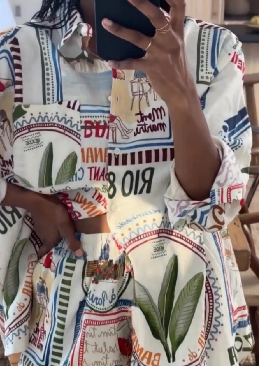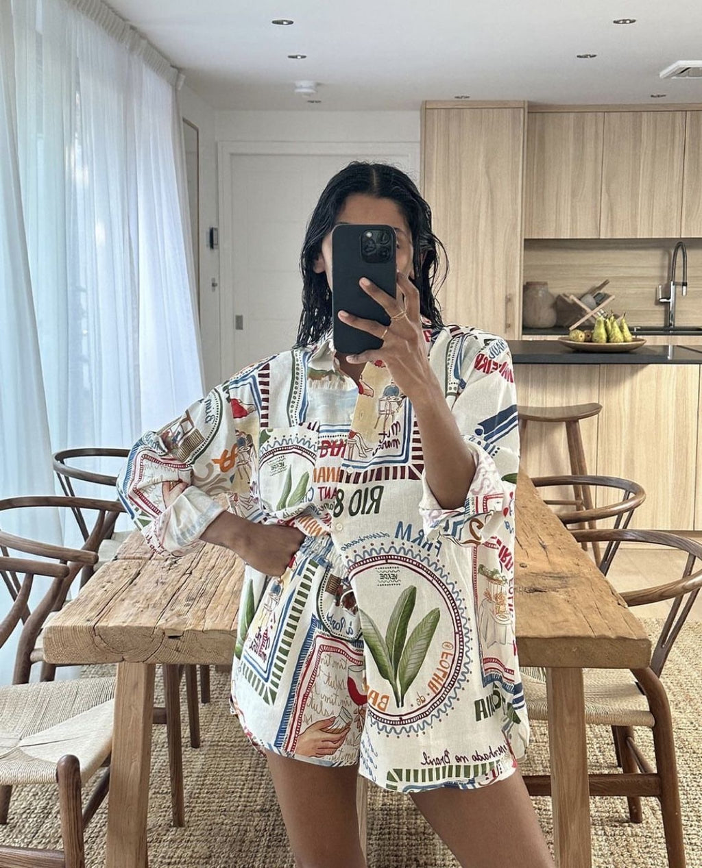 חולצת הסט היא מכופתרת בסגנון אוברסייז, בחולצה יש כפתורים קדמיים וכיס צד קדמי ובמכנסיים יש כיסי צד חלומיים.